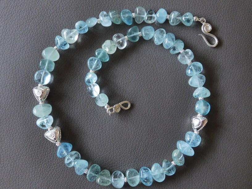 UNIKAT! Piękny naszyjnik z akwamarynu z srebrnymi dodatkami – srebro (925). Ręczne wykonanie.