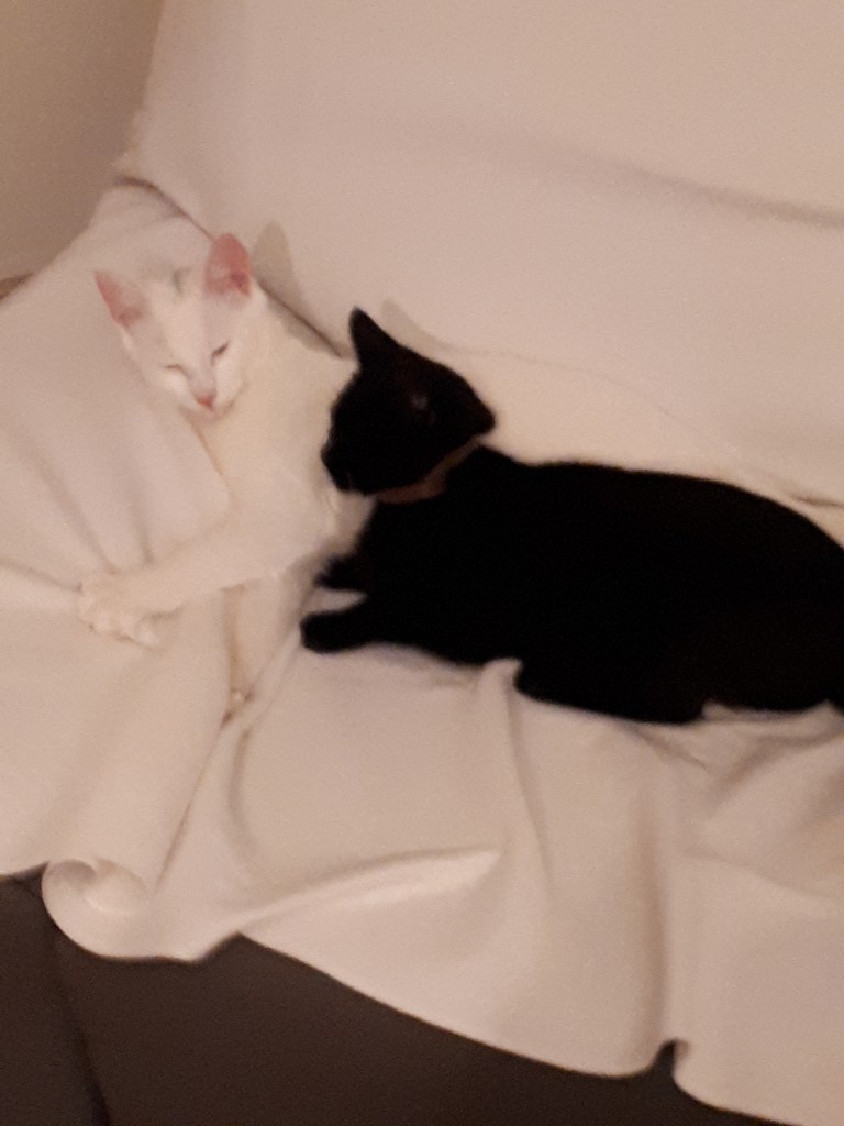 Nala (czarna kotka) i Sunny (pręgowana kotka), to rodzone siostry. Maja 7 miesięcy. Nala jest odważna i chętna do zabawy. Uwielbia kolorowe piłeczki z kuleczkami w środku, myszki zabawki, czy kolorowe na patyku piórka – uwielbia też „tapety” hahaha Jednym słowem, jest kochana i bardzo żywa.