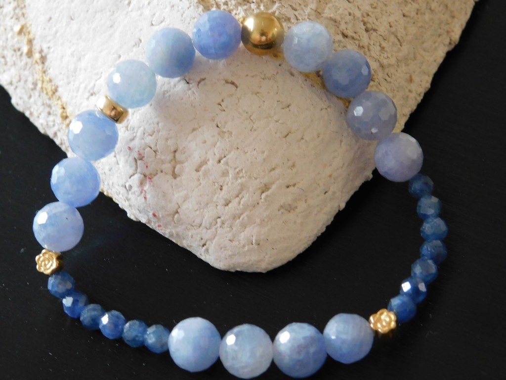 Piękna bransoletka z fasetowanych szafirów (Klasa AA). Siła, Moc i Mądrość w prawdziwych szafirach. Szafir otwiera nas na boski wymiar; wzmacnia naszą koncentrację na realizację naszych marzeń.