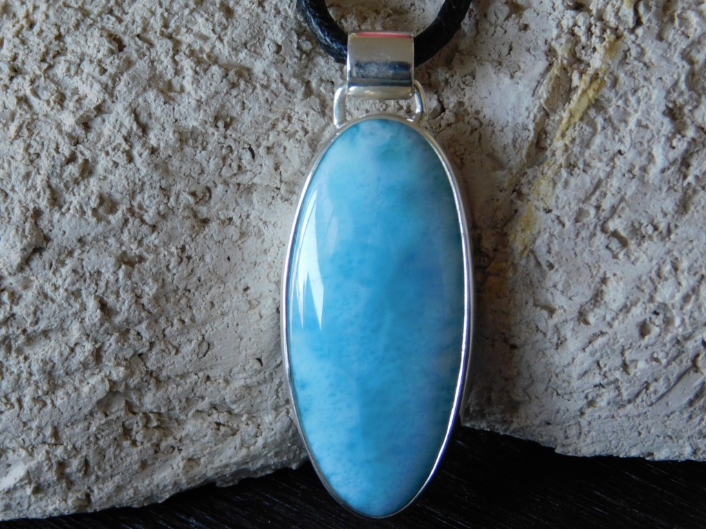 Efektowny wisiorek ze srebra (925) z naturalnego larimaru. Pomaga odkryć swoje powołanie; chroni przed fałszywymi ludźmi; rozwija zdolności paranormalne. Ręczne wykonanie