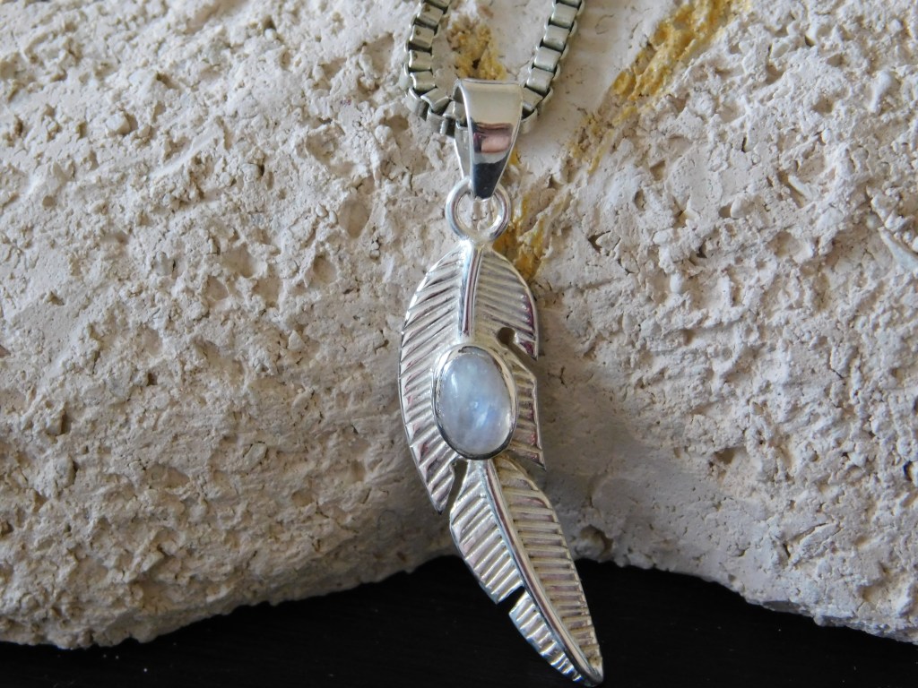 Subtelny wisiorek ze srebra „Piórko” z naturalnym labradorytem. Labradoryt – mistyczny kamień, pomaga odnaleźć naszą drogę życiową; dodaje odwagi, kreatywności; pomaga wybaczyć