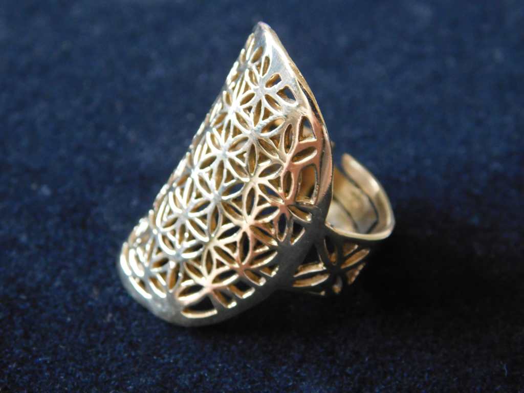 Pierścień Kwiat Życia – Kwiat Życia pomaga nam pamiętać, kim naprawdę jesteśmy, jest w stanie rozpuścić nasze blokady i odpowiednio uwolnić energię życiową. Kwiat Życia tworzy absolutnie harmonijne, wibrujące pole.