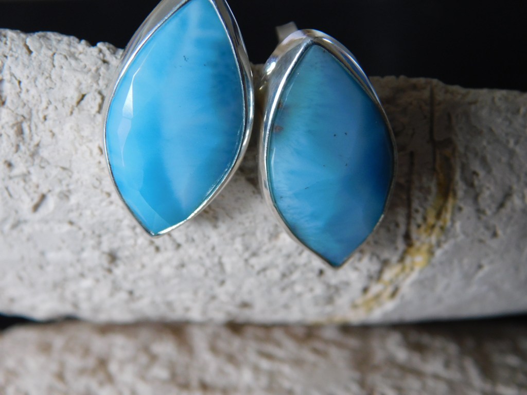 Eleganckie kolczyki ze srebra (925) z naturalnego larimaru Navette. Pomaga odkryć swoje powołanie; chroni przed fałszywymi ludźmi; rozwija zdolności paranormalne. Ręczne wykonanie