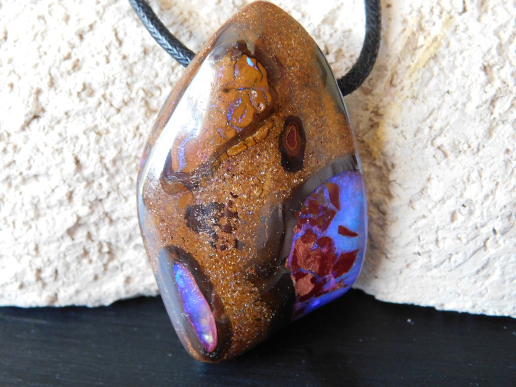 UNIKAT! Opal Boulder, kamień o niezwykłych efektach świetlnych. Opal to kamień radości, pasji, wzmacnia entuzjazm do nowych projektów i pomysłów, dodaje chęci do życia. Pomaga w realizacji marzeń.