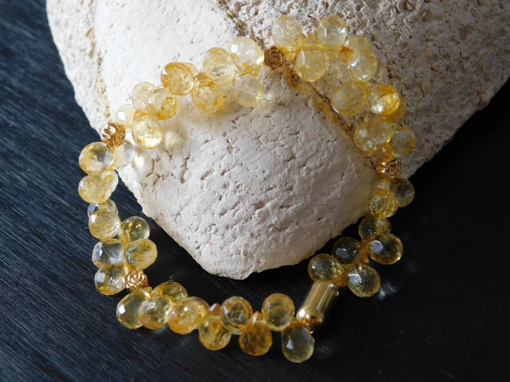 Piękna bransoletka z naturalnego cytrynu. Delikatne cytrynowe kropelki połączone ze srebrnymi dodatkami. Cytryn to kamień radości, światła, szczęścia i dobrobytu. Rozświetla światło, tam, gdzie jest mrok. Dodaje chęci do życia i realizacji marzeń.