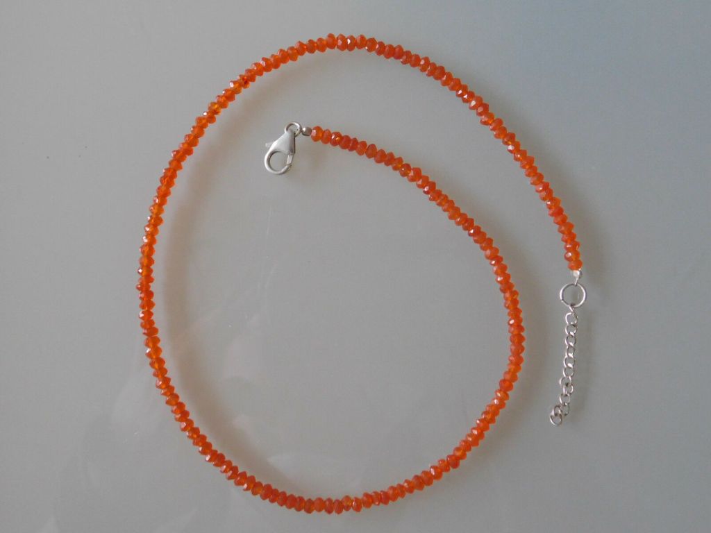 Piękny naszyjnik z naturalnego karneolu. Karneol dodaje odwagi, pewności siebie, pomaga dostrzec szczęście; kamień dla osób smutnych i pesymistycznie nastawionych do życia