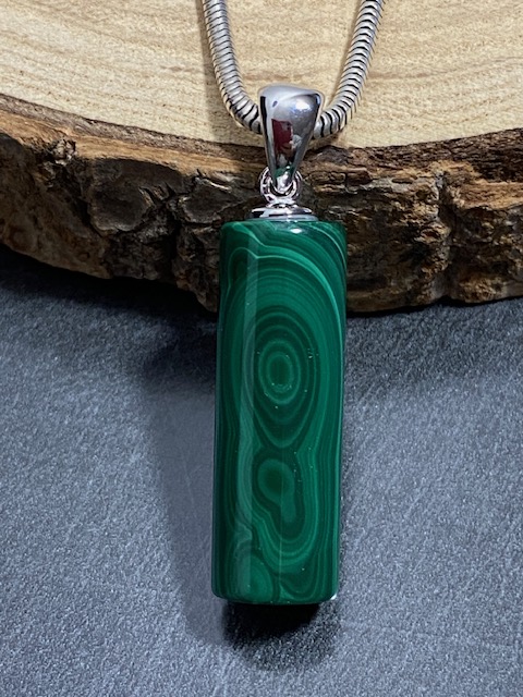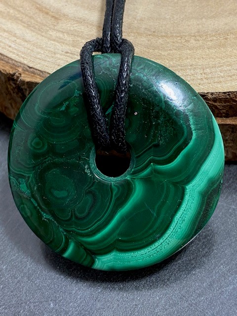 Malachit to ozdobny kamien, ktory po oszlifowaniu ujawnia na swej powierzchni skomplikowane wzory tworzone przez pasma jasnych i ciemnych walorow zieleni. Jest ruda miedzi i czesto wystepuje w jej sasiedztwie.
